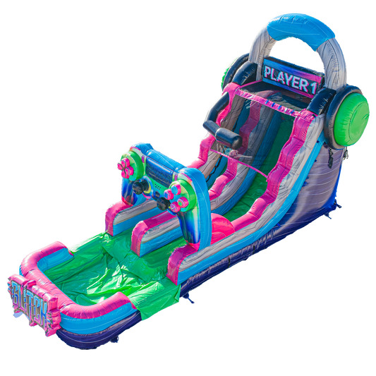 - We offer multiple different types of units within each product family and theme. Find obstacle courses, games, and waterslides with shared design themes so you can put together party packages. We also have a selection of single-, dual-, and multi-slide options.