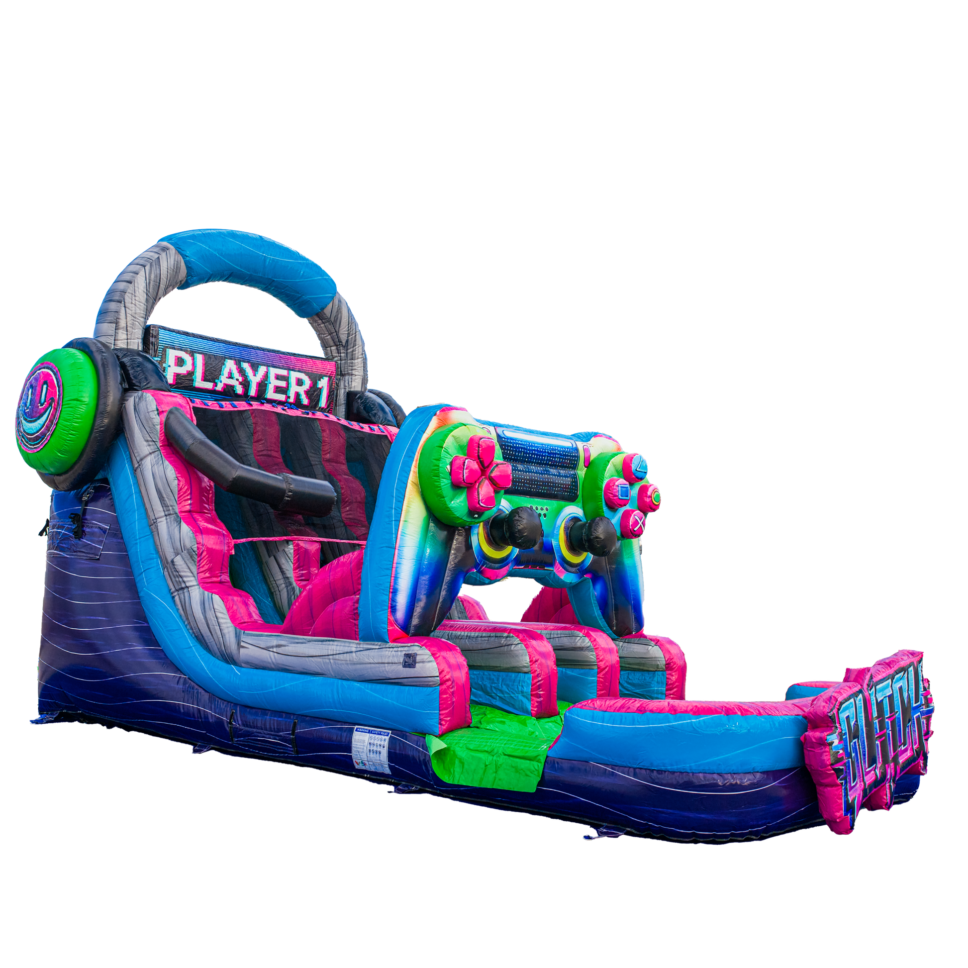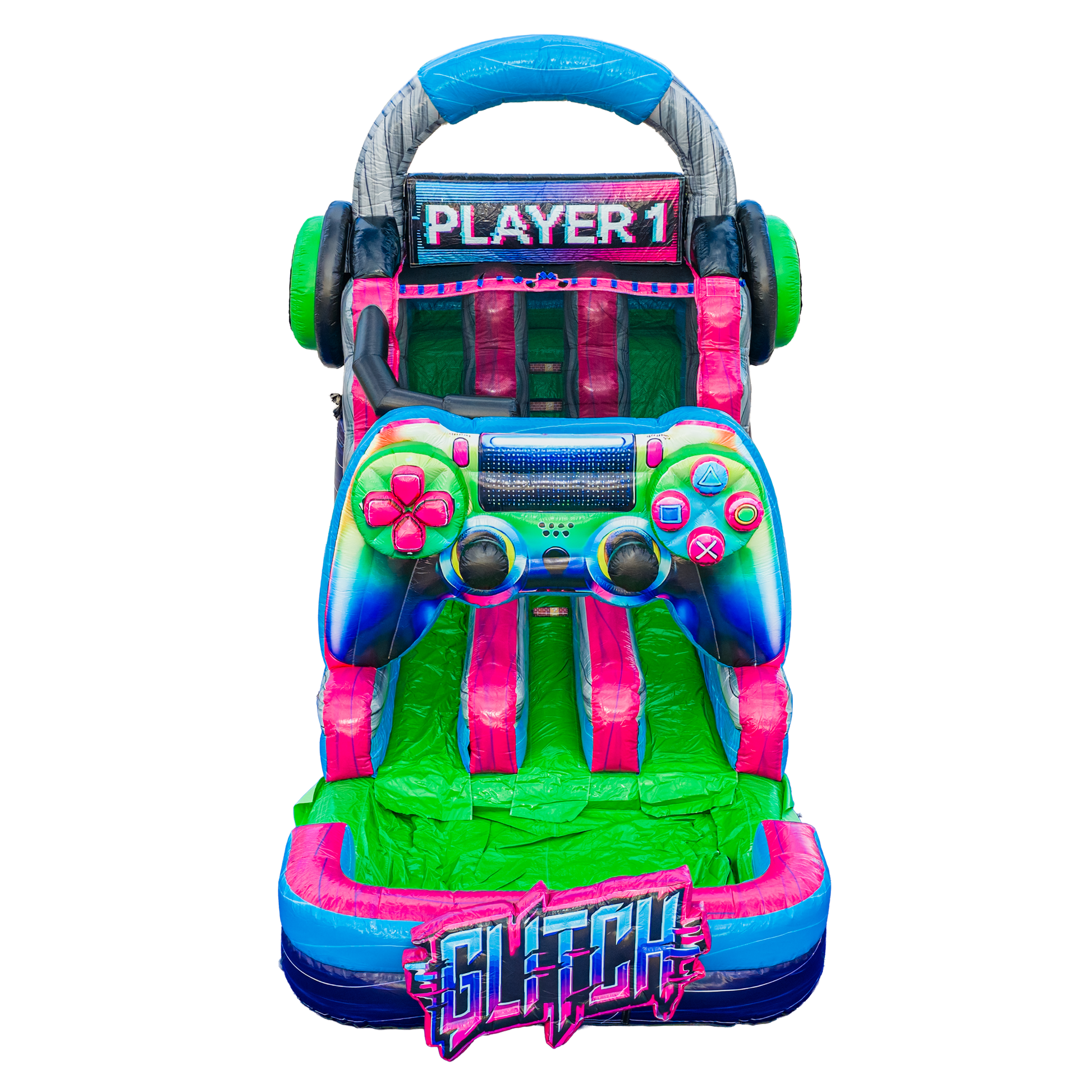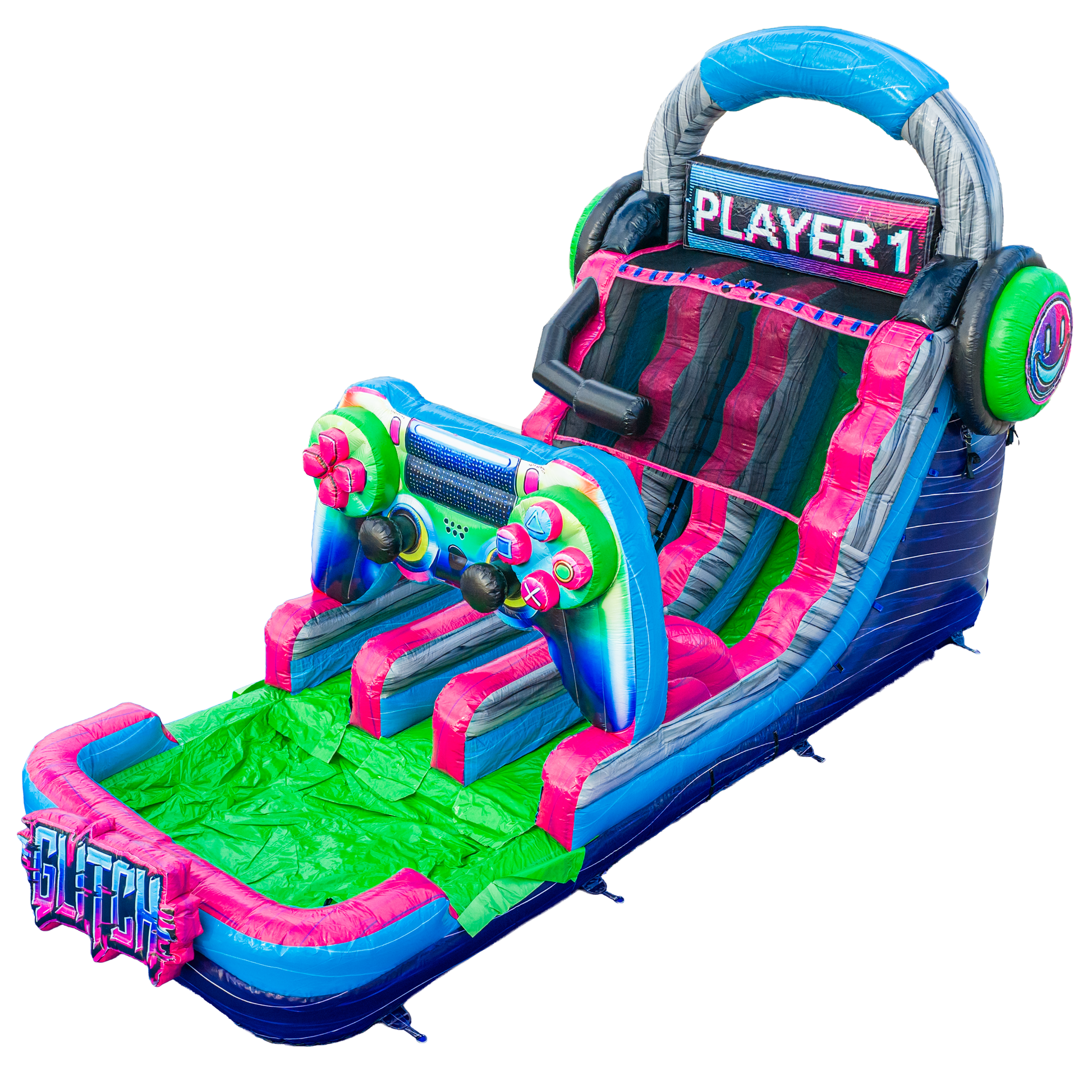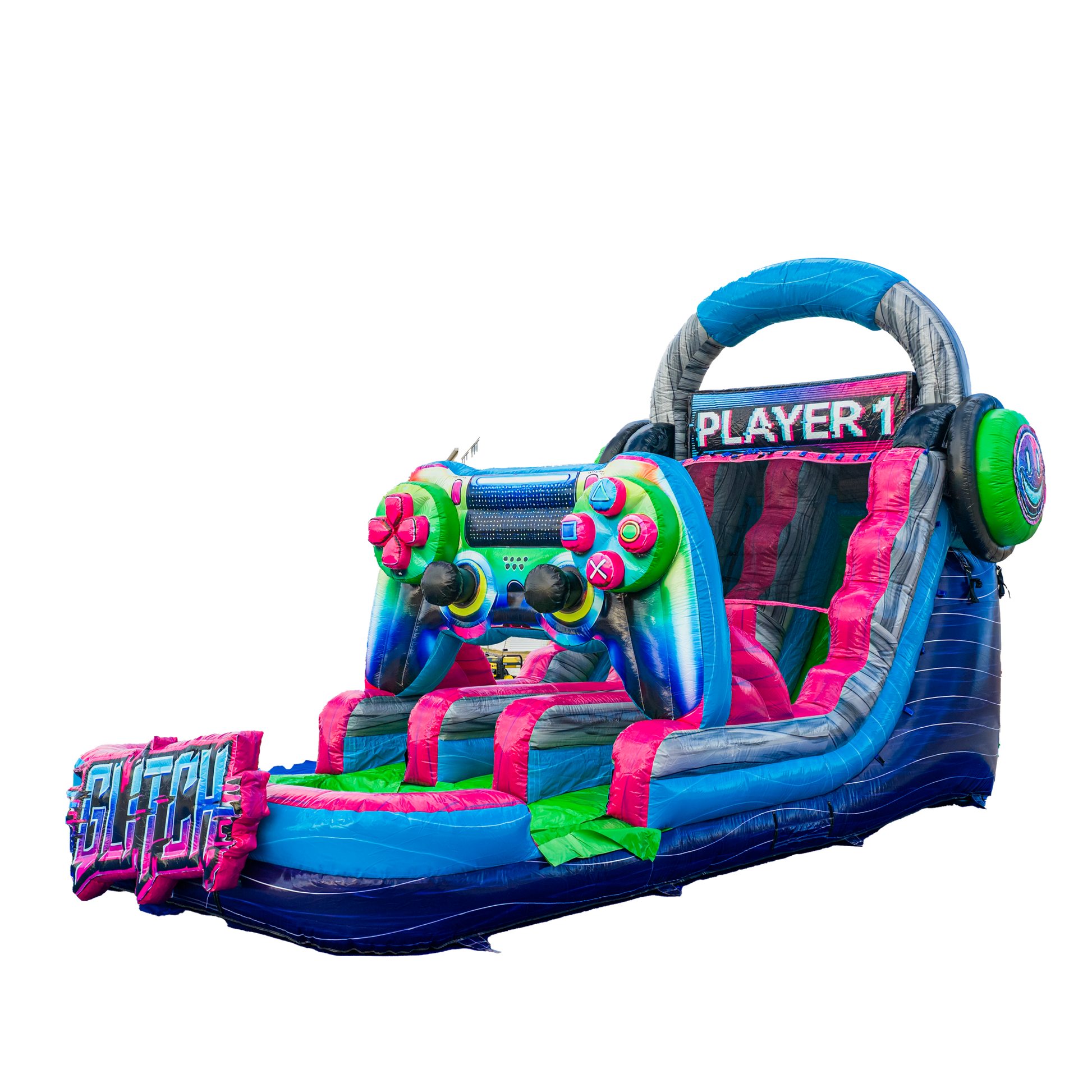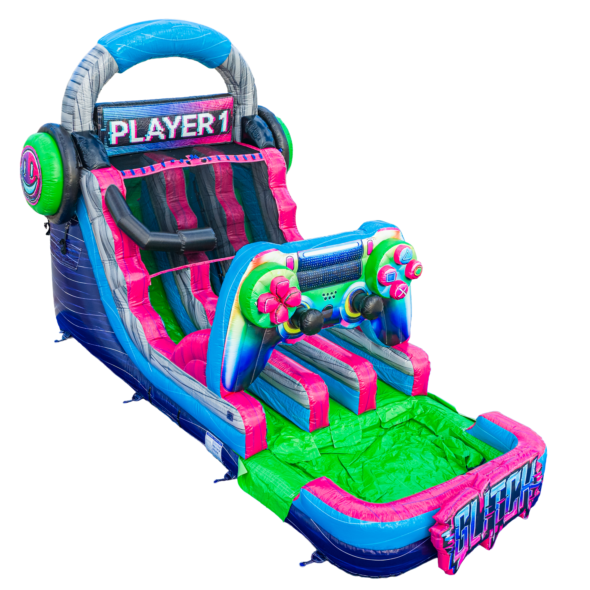 Add the 16FT Glitch Dual Lane Slide to your rental inventory today and turn every event into a showstopper.