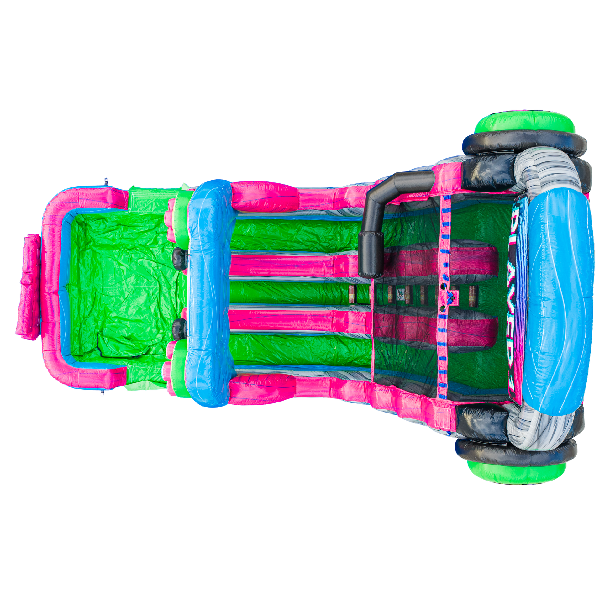 Constructed from premium commercial-grade vinyl, the 16FT Glitch Dual Lane Slide is engineered for heavy-duty use while remaining easy to set up, transport, and maintain. The 16-foot height delivers an exciting ride for a wide range of ages, offering just the right level of thrill without sacrificing safety.
