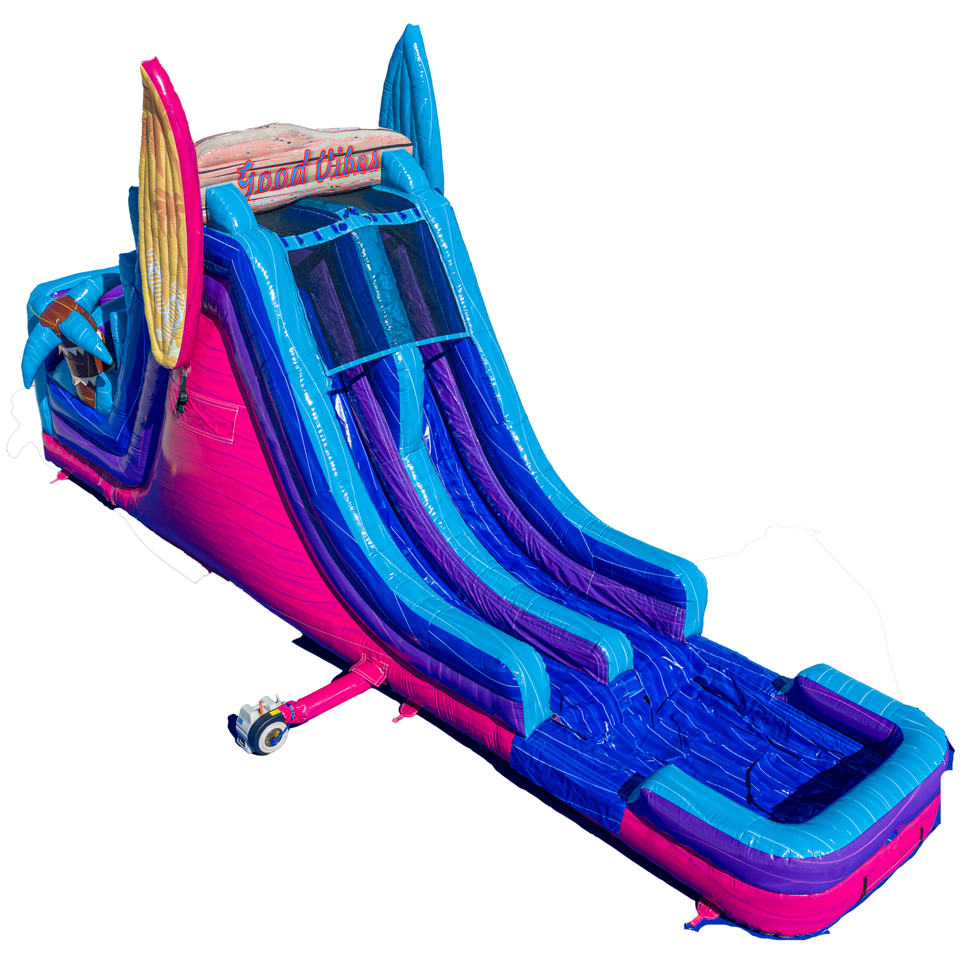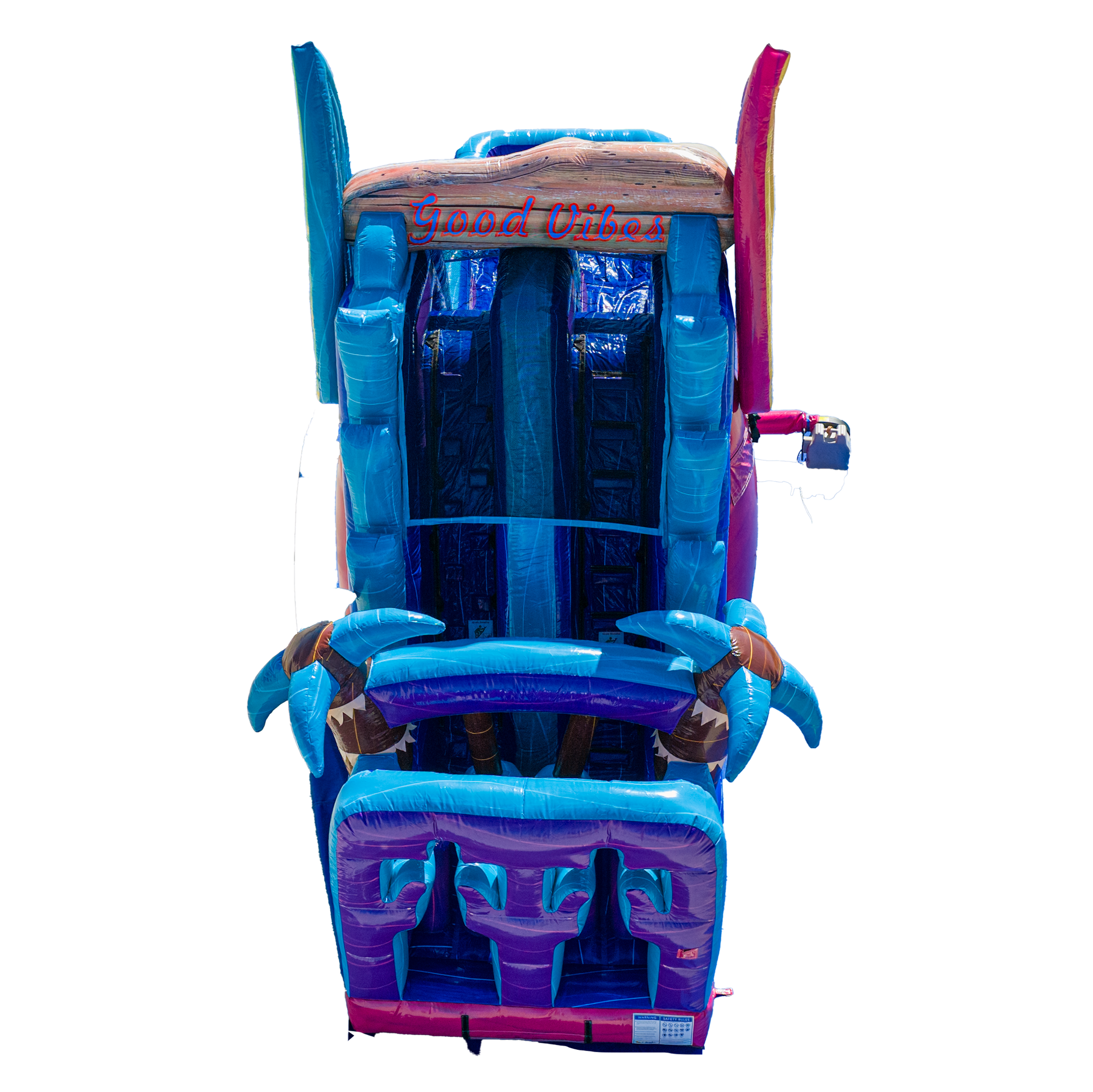 When you want to turn heads and book out fast, the 18FT Good Vibes Obstacle Course delivers big-time. Designed in a bold magenta colorway with laid-back surfer vibes, this inflatable obstacle course isn’t just eye candy—it’s a profit machine. At 18 feet tall, it offers the perfect mix of challenge and fun for ages 7 and up, keeping kids, teens, and even adults fully engaged from start to finish.