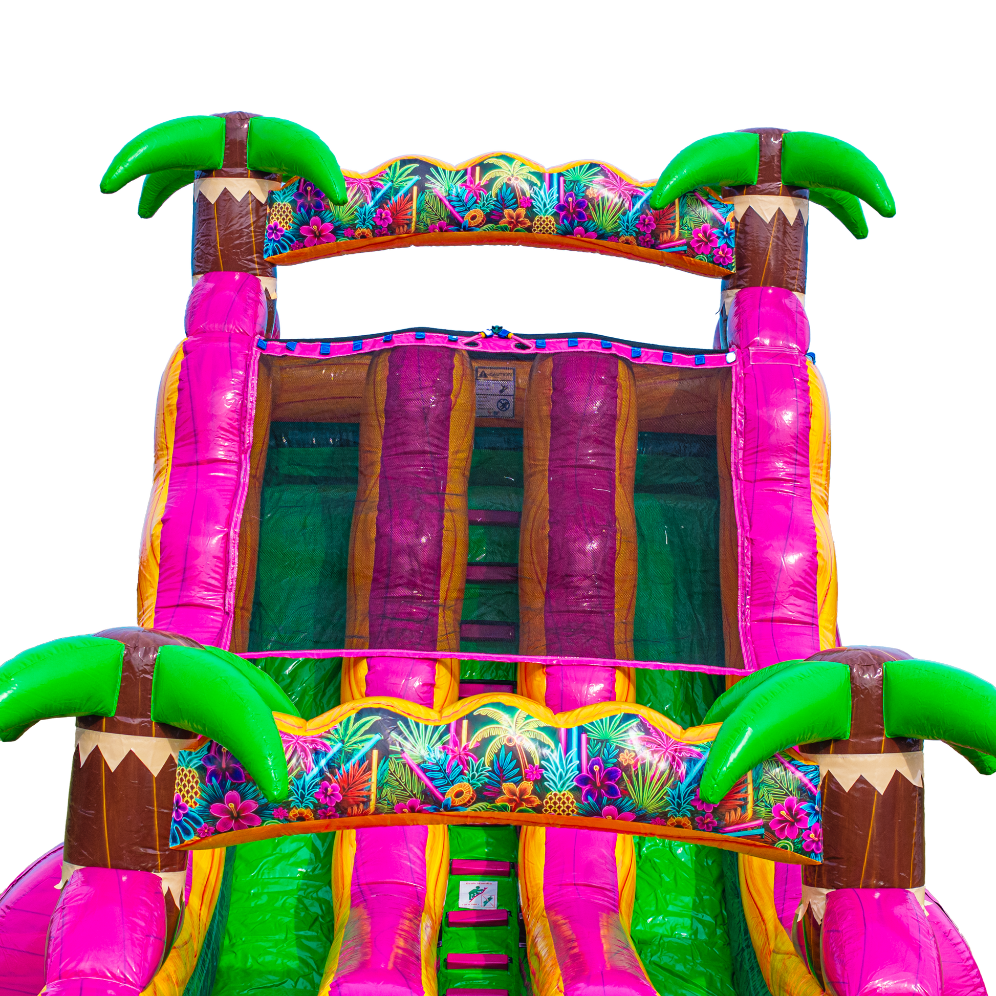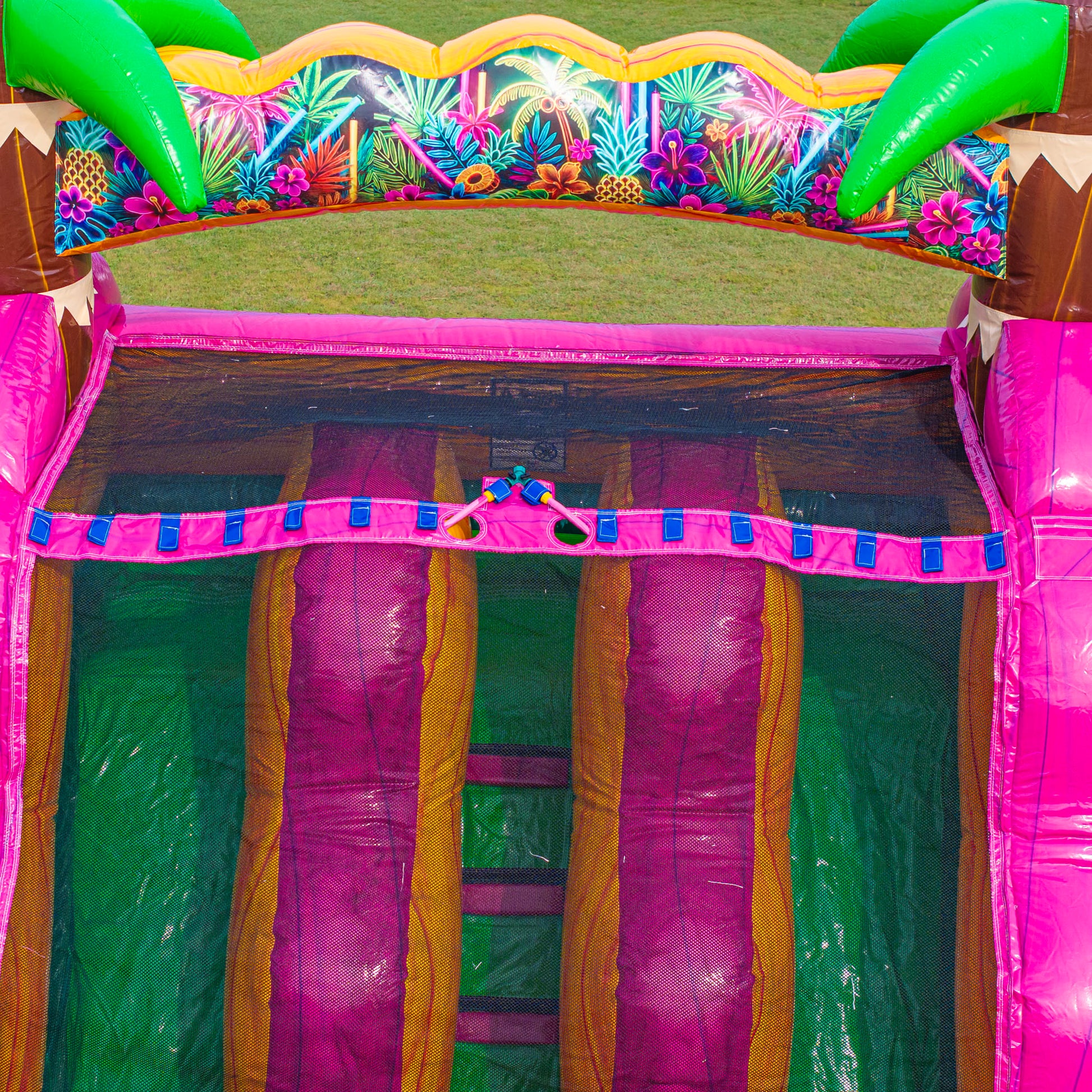 Bright, bold, and built for nonstop summer fun—the 18FT Magenta Dual Lane Slide is a rental powerhouse that stands tall in any lineup. With two exhilarating lanes, this inflatable water slide keeps lines moving and energy high at backyard parties, school events, and summer festivals. It’s perfect for kids ages 7 and up, and with dual lanes, you’re doubling the excitement and the throughput.