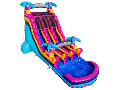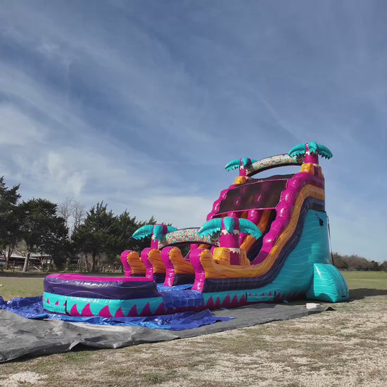 Turn up the volume on backyard excitement with the 18FT Teal Rippling Rush Dual Lane Slide—built for speed, style, and side-by-side thrills. This bold and beautiful inflatable water slide isn’t just eye-catching—it’s engineered for throughput, allowing two riders at once to race down the rippling teal lanes to a splashy finish.