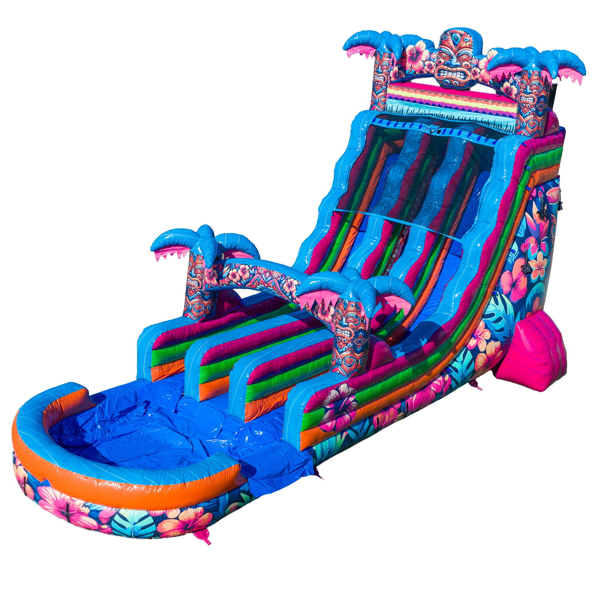 Bright, bold, and built for nonstop summer fun—the 20FT Hibiscus Dual Lane Slide is a rental powerhouse that stands tall in any lineup. With two exhilarating lanes, this inflatable water slide keeps lines moving and energy high at backyard parties, school events, and summer festivals. It’s perfect for kids ages 7 and up, and with dual lanes, you’re doubling the excitement and the throughput.