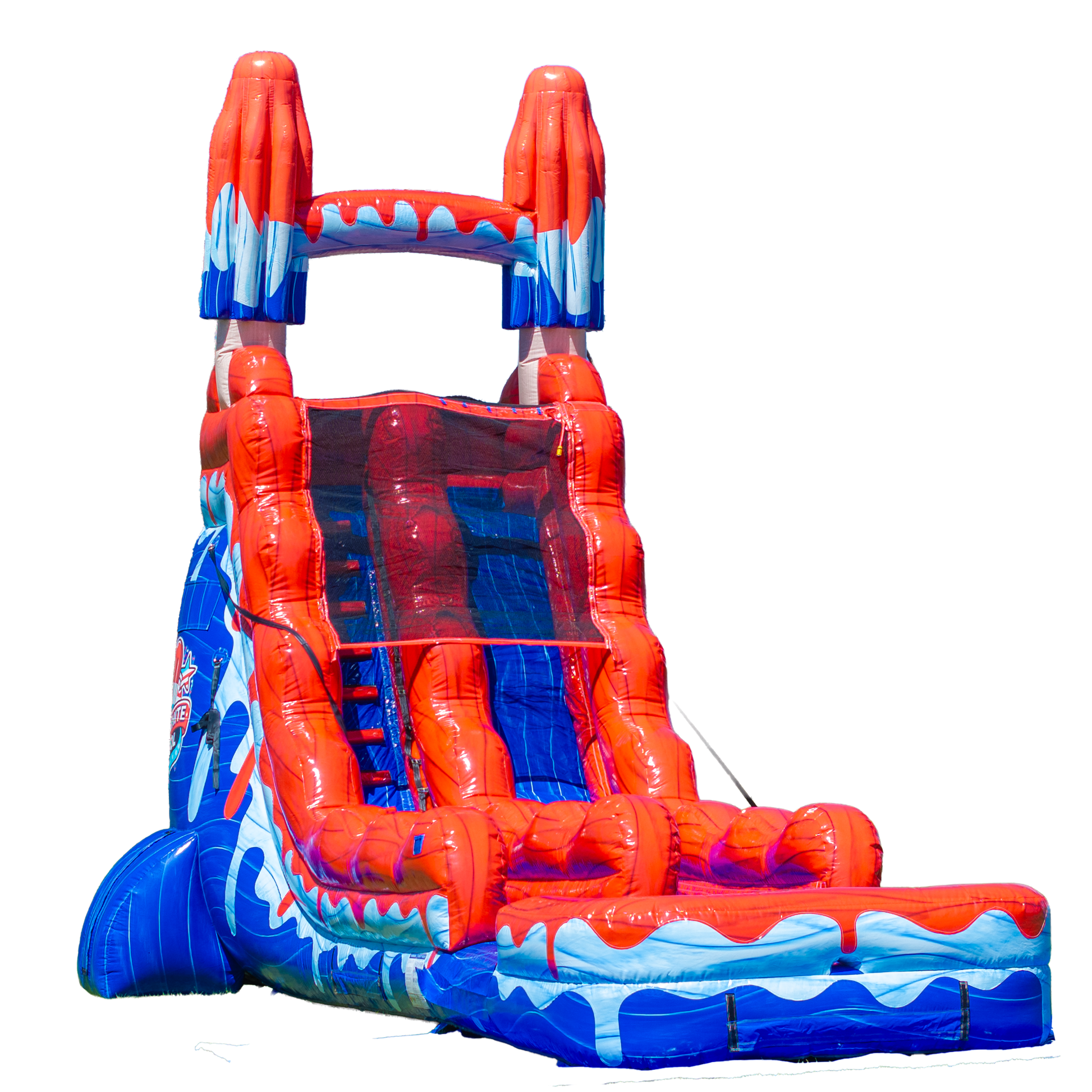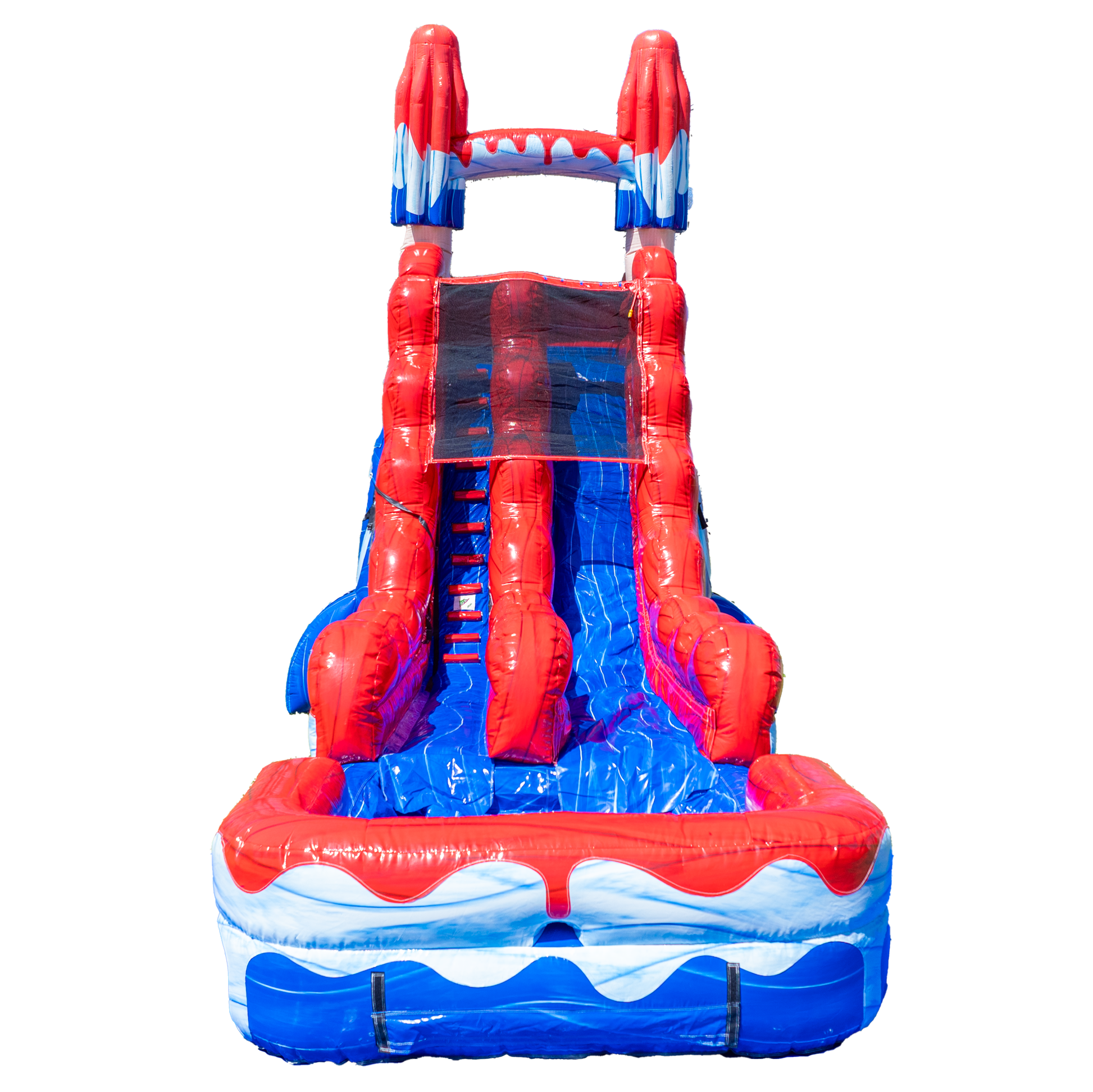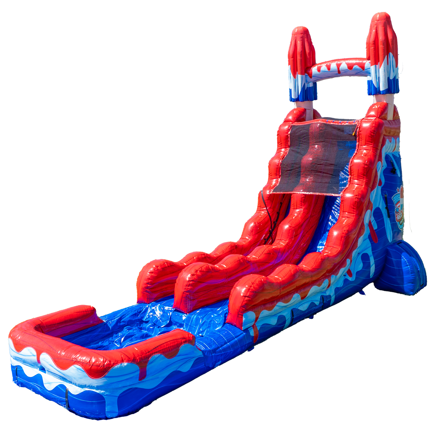 Standing tall at 20 feet, this single lane popsicle-themed water slide delivers the ultimate cool-down experience with a big splash of color and personality. Its red, white, and blue design instantly grabs attention, making it a star attraction at backyard parties, school celebrations, and summer events of all kinds.