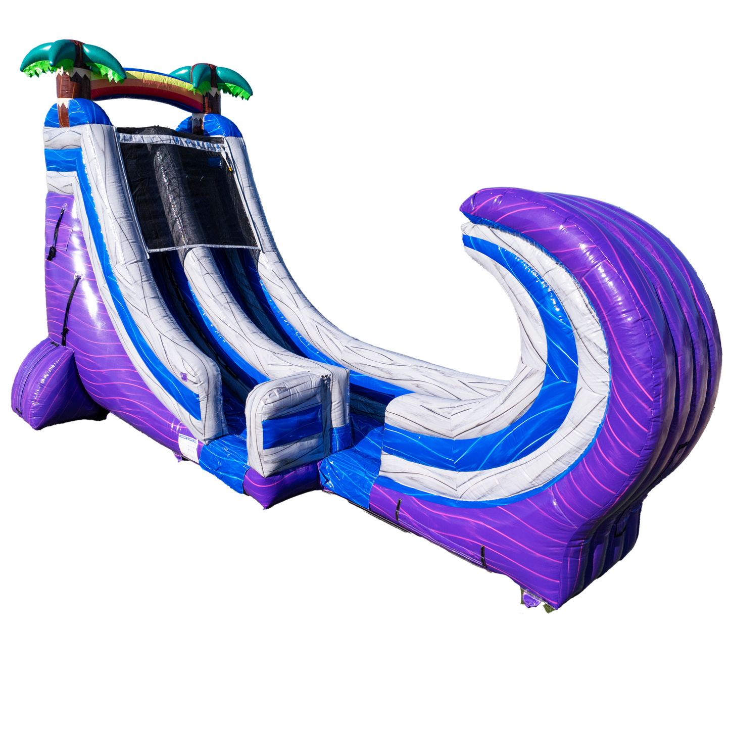 Built from heavy-duty materials with vibrant tropical colors, this slide commands attention and delivers repeat rentals thanks to its versatility and eye-catching design. Whether you’re cooling off crowds in the summer or offering dry fun in the cooler months, the Tropical Wave keeps your business riding high.
