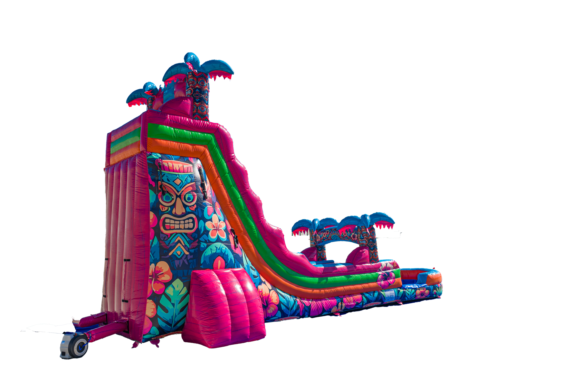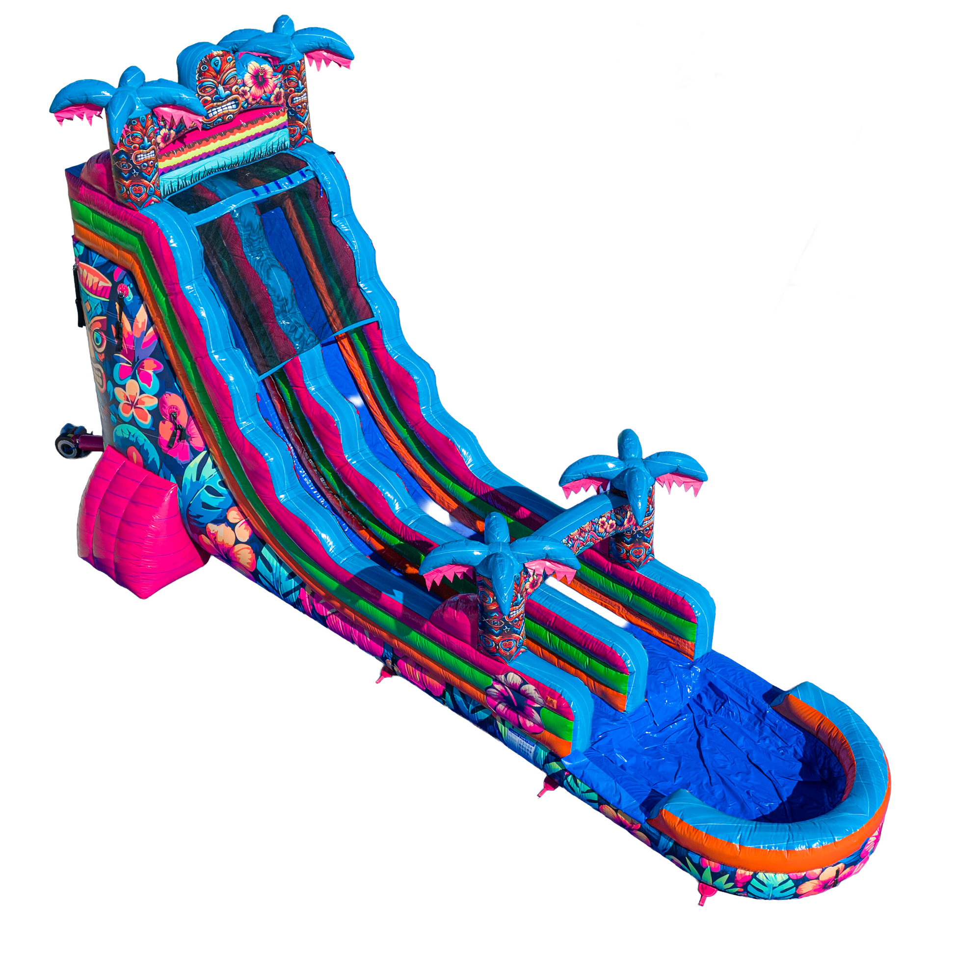 Bright, bold, and built for nonstop summer fun—the 22FT Hibiscus Single Lane Slide is a rental powerhouse that stands tall in any lineup. With two exhilarating lanes, this inflatable water slide keeps lines moving and energy high at backyard parties, school events, and summer festivals. It’s perfect for kids ages 7 and up, and with dual lanes, you’re doubling the excitement and the throughput.