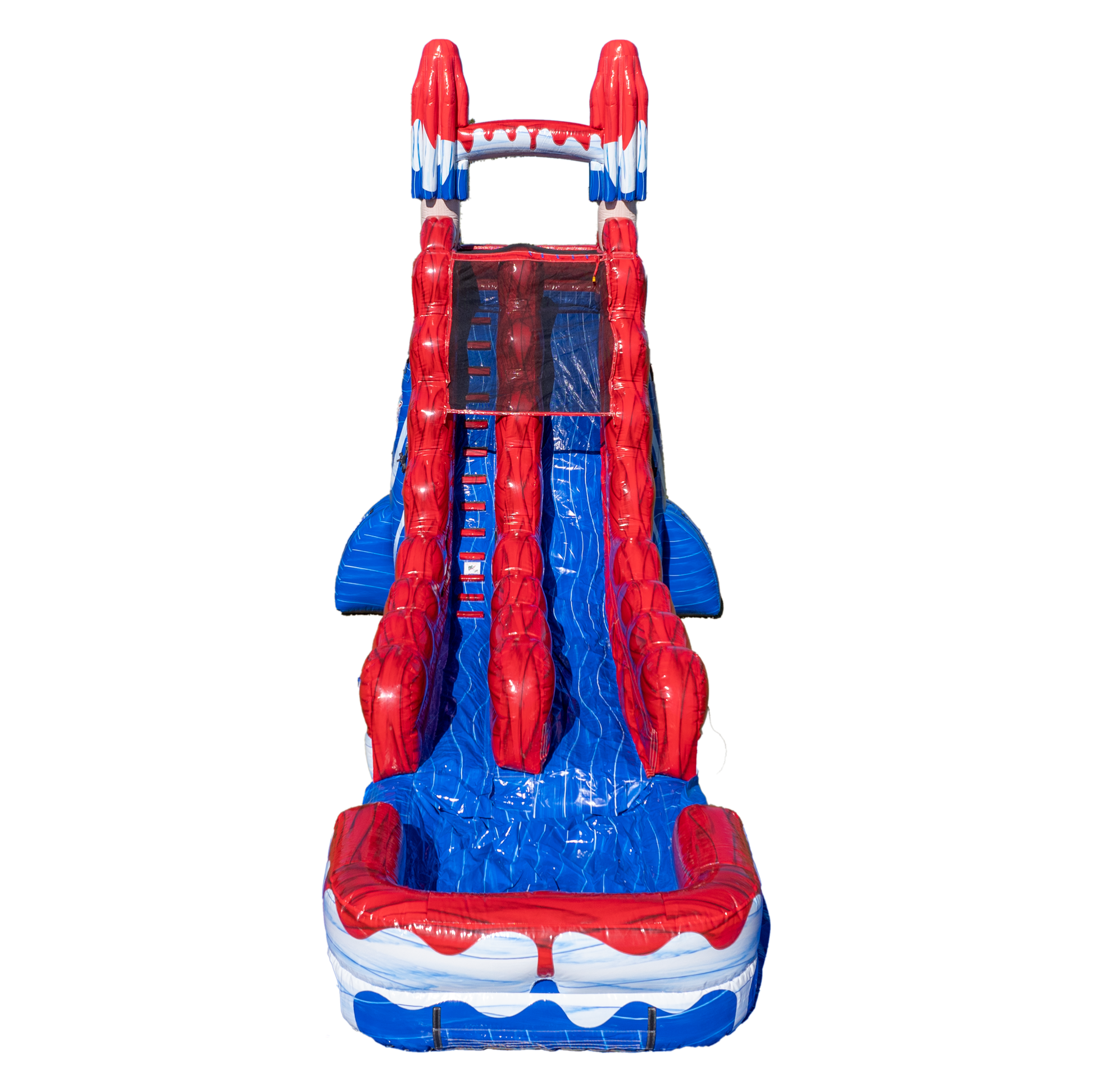 Bring on the summer heat—this 22FT Red White and Cool Popsicle Slide is ready to cool things down in the best way possible. With a bold popsicle design in vibrant red, white, and blue, this single lane water slide is impossible to miss and even harder to resist. It’s tall, fast, and full of energy, making it the perfect choice for older kids who are all about high-speed splashes.