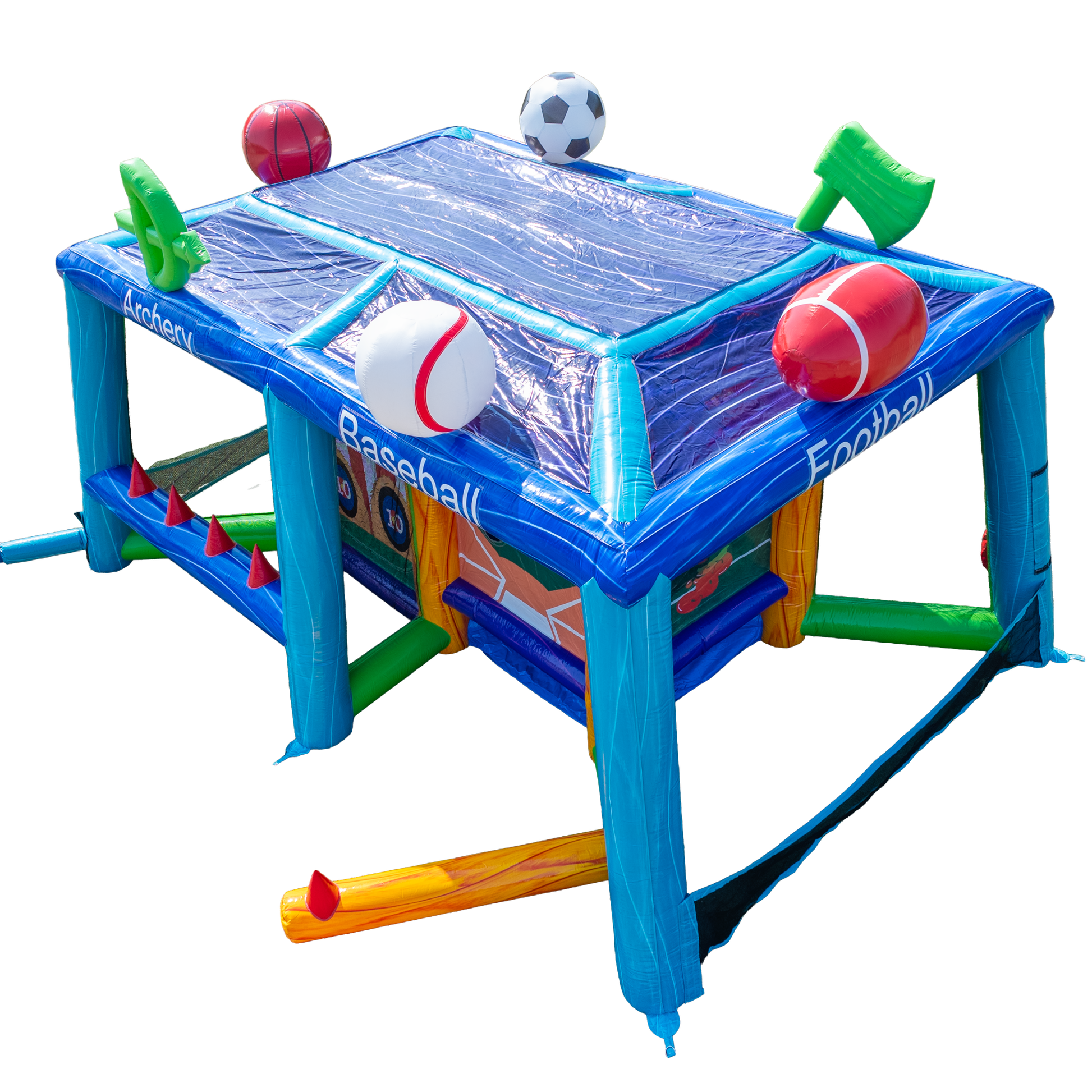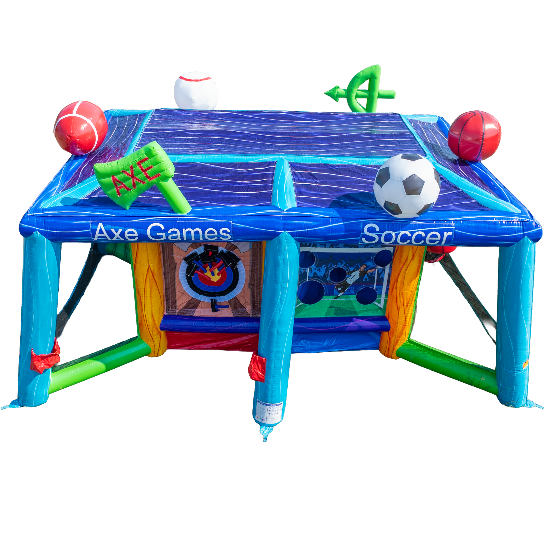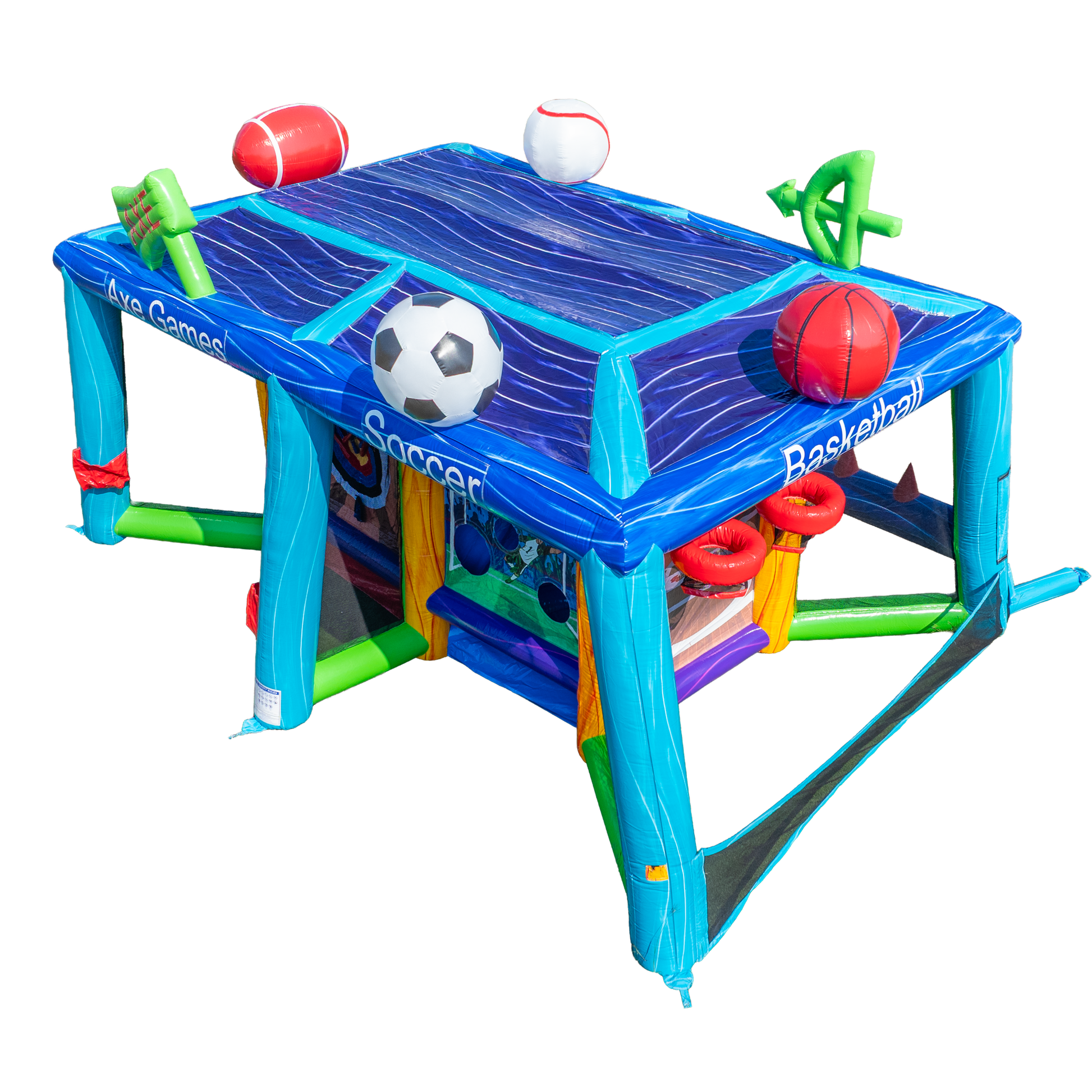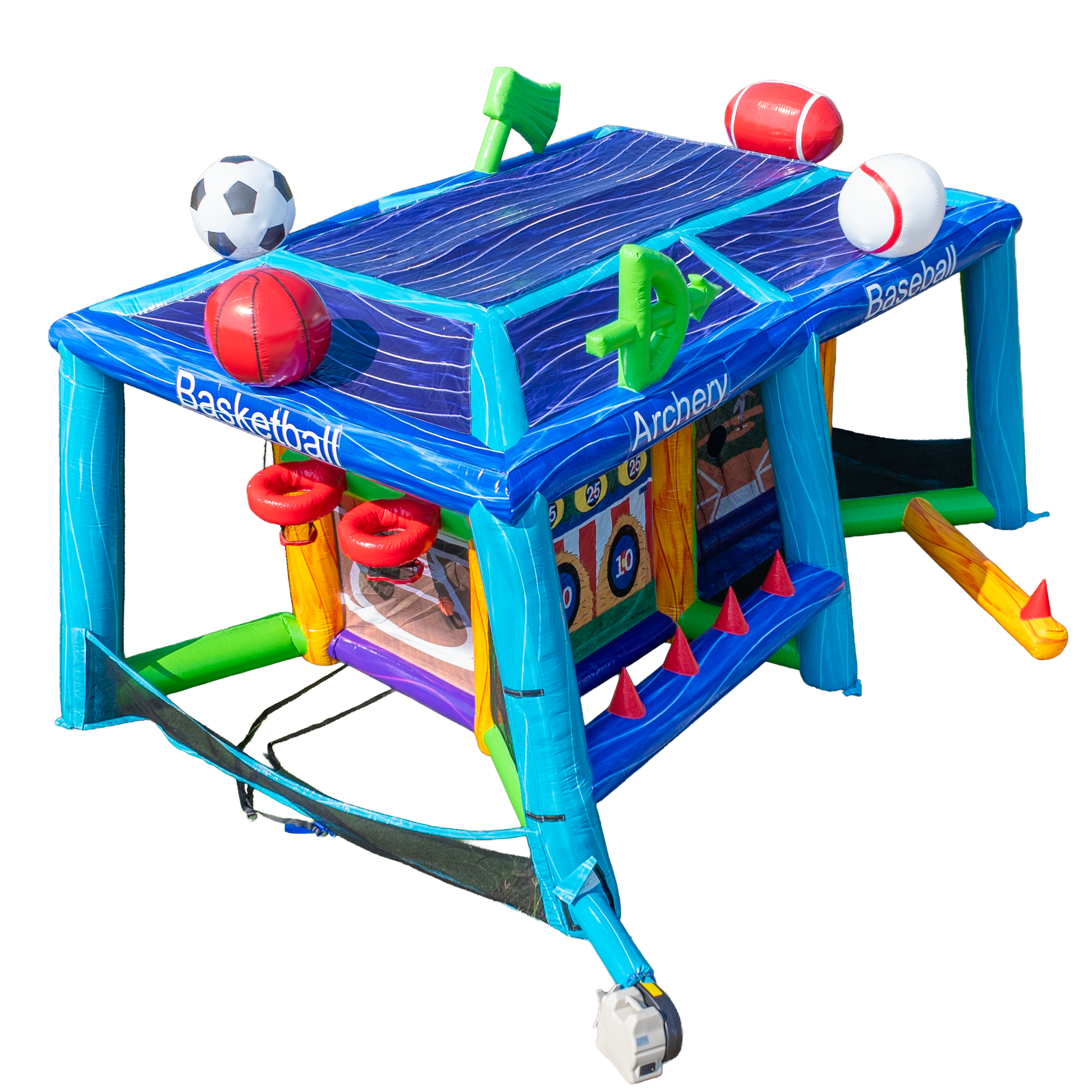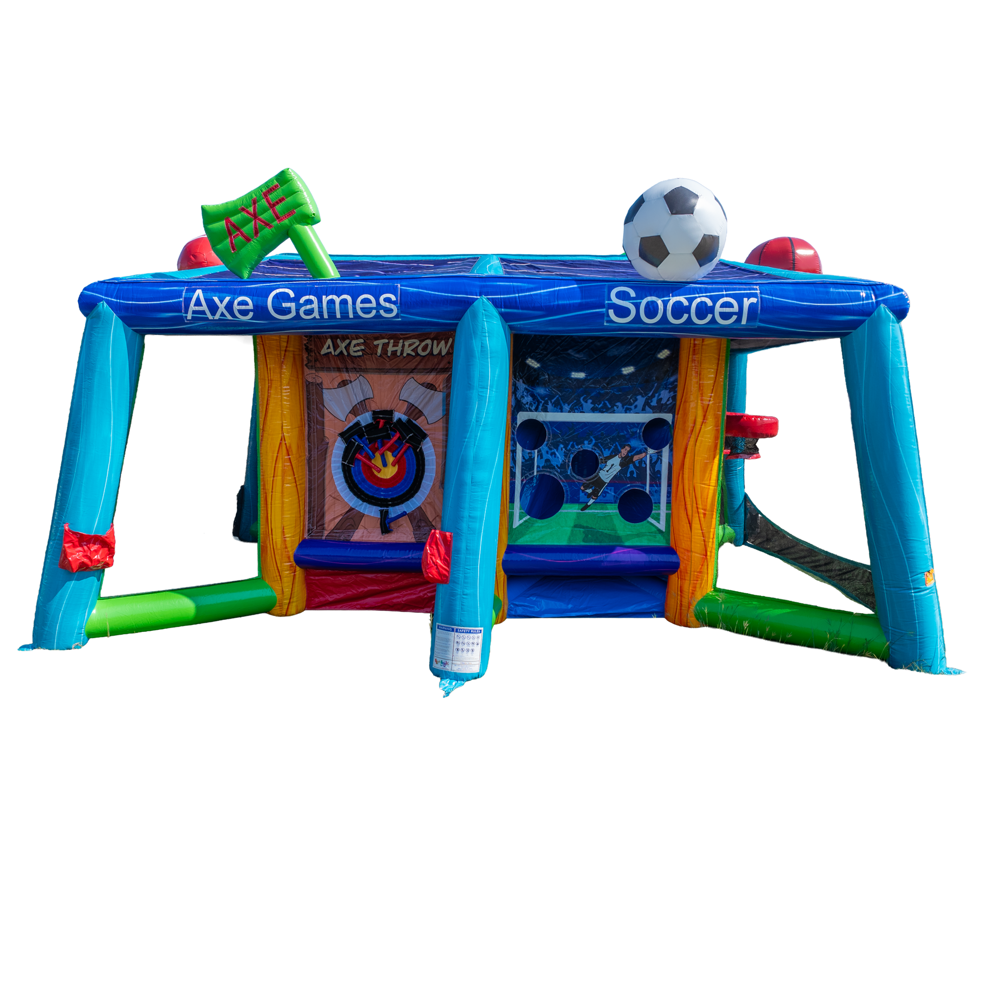 Get ready to dominate your next event lineup with the Fieldhouse 6—an action-packed inflatable game that delivers nonstop excitement and unbeatable value. This all-in-one unit features Archery, Baseball, Football, Axe Throwing, Soccer, and Basketball, making it the MVP of any rental fleet.