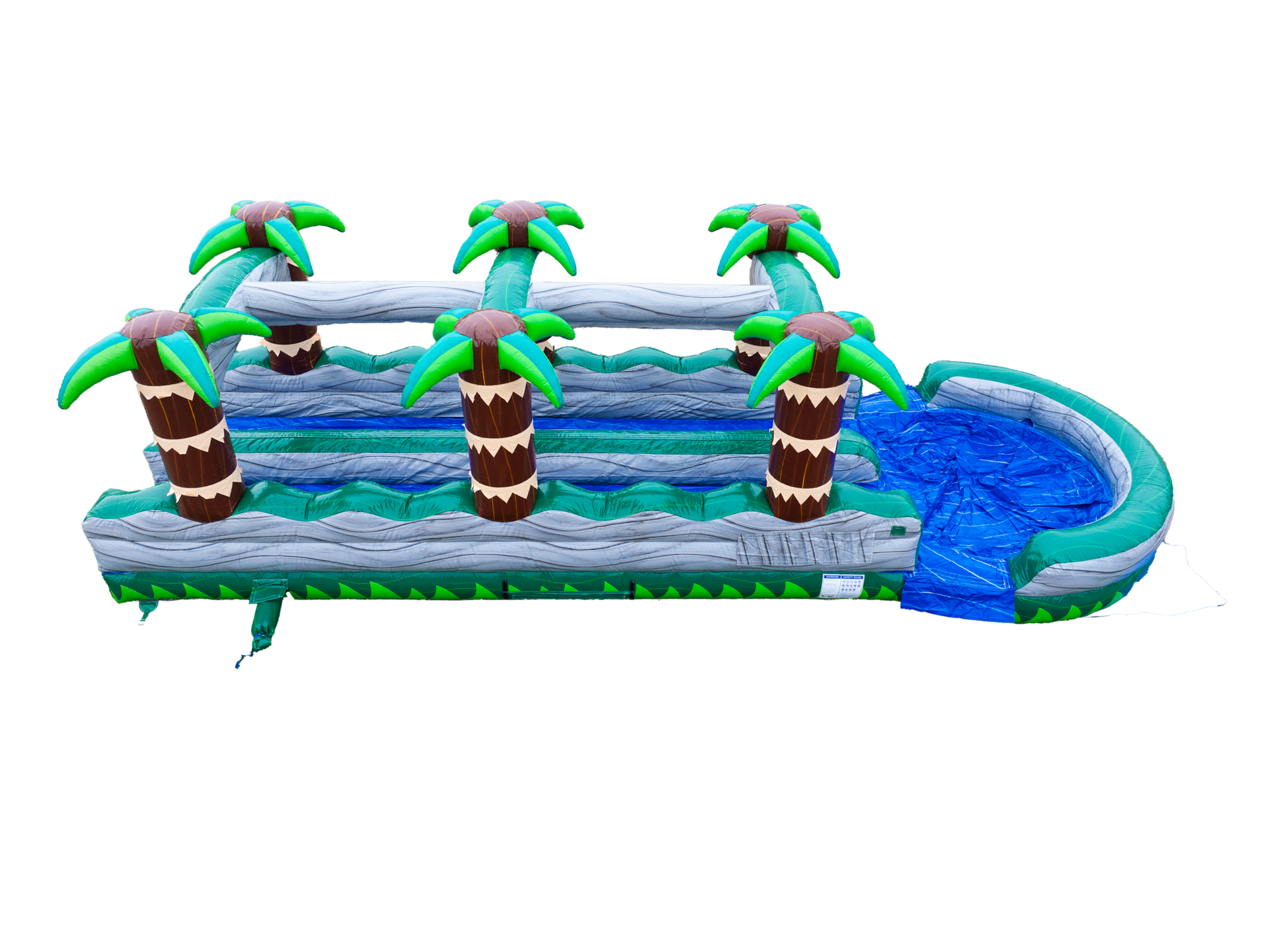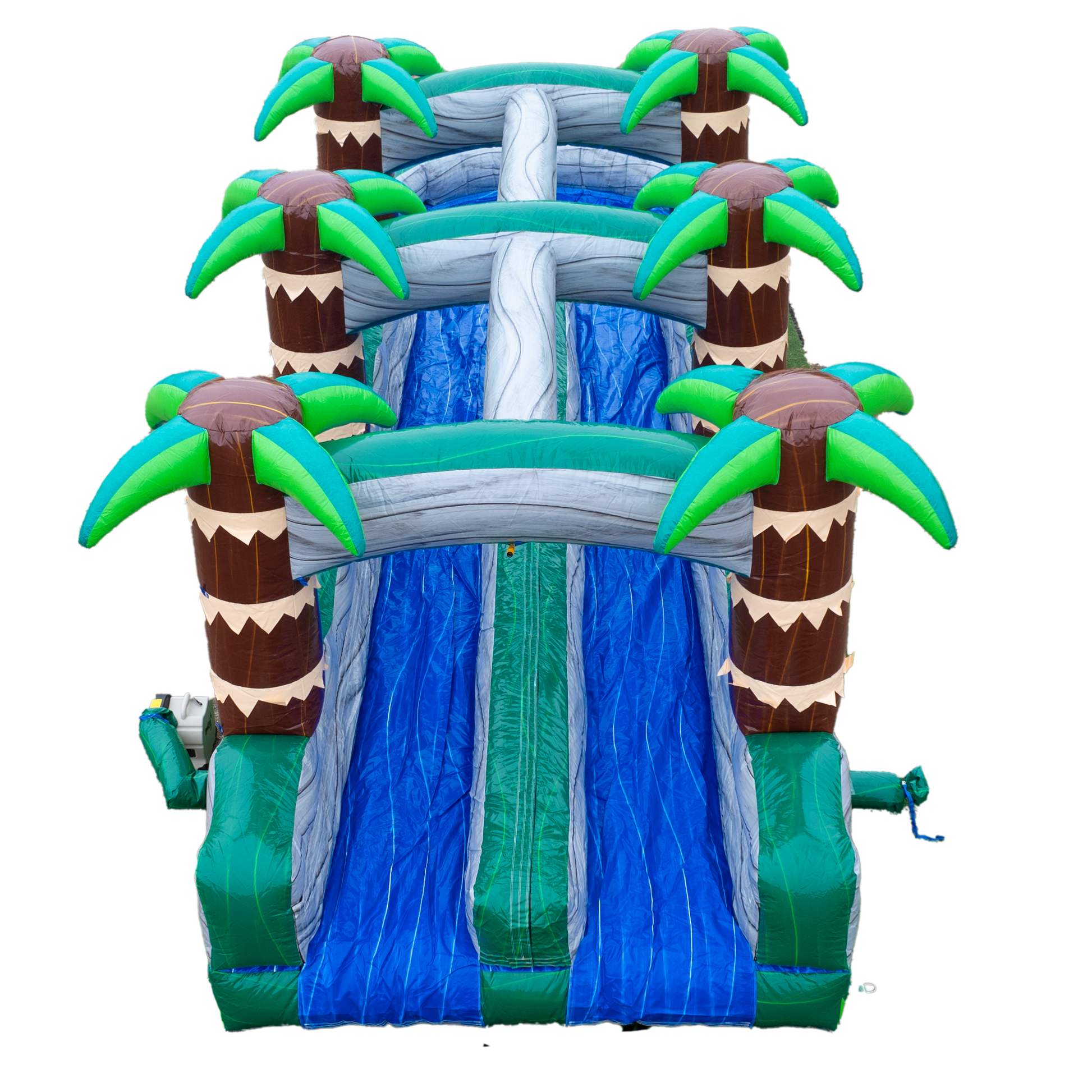 The Green Tropical Dual Slip N Slide is a must-have for your summer rental fleet—combining vibrant palm tree flair with two lanes of side-by-side racing action. Whether it’s a backyard party, school event, or community festival, this inflatable keeps the line moving and the kids coming back for more.