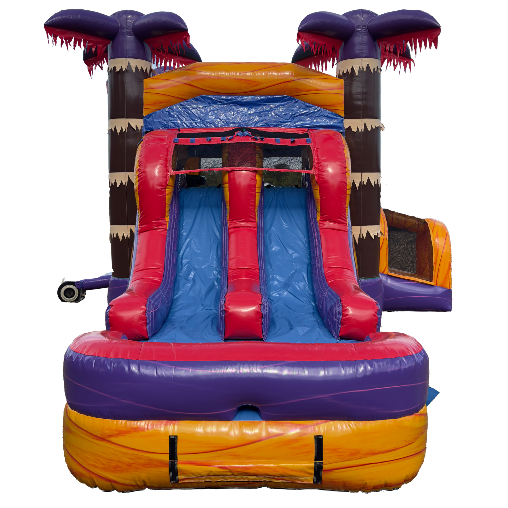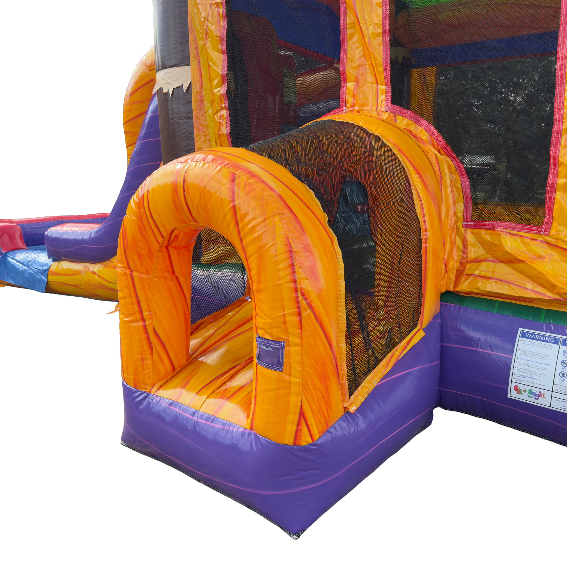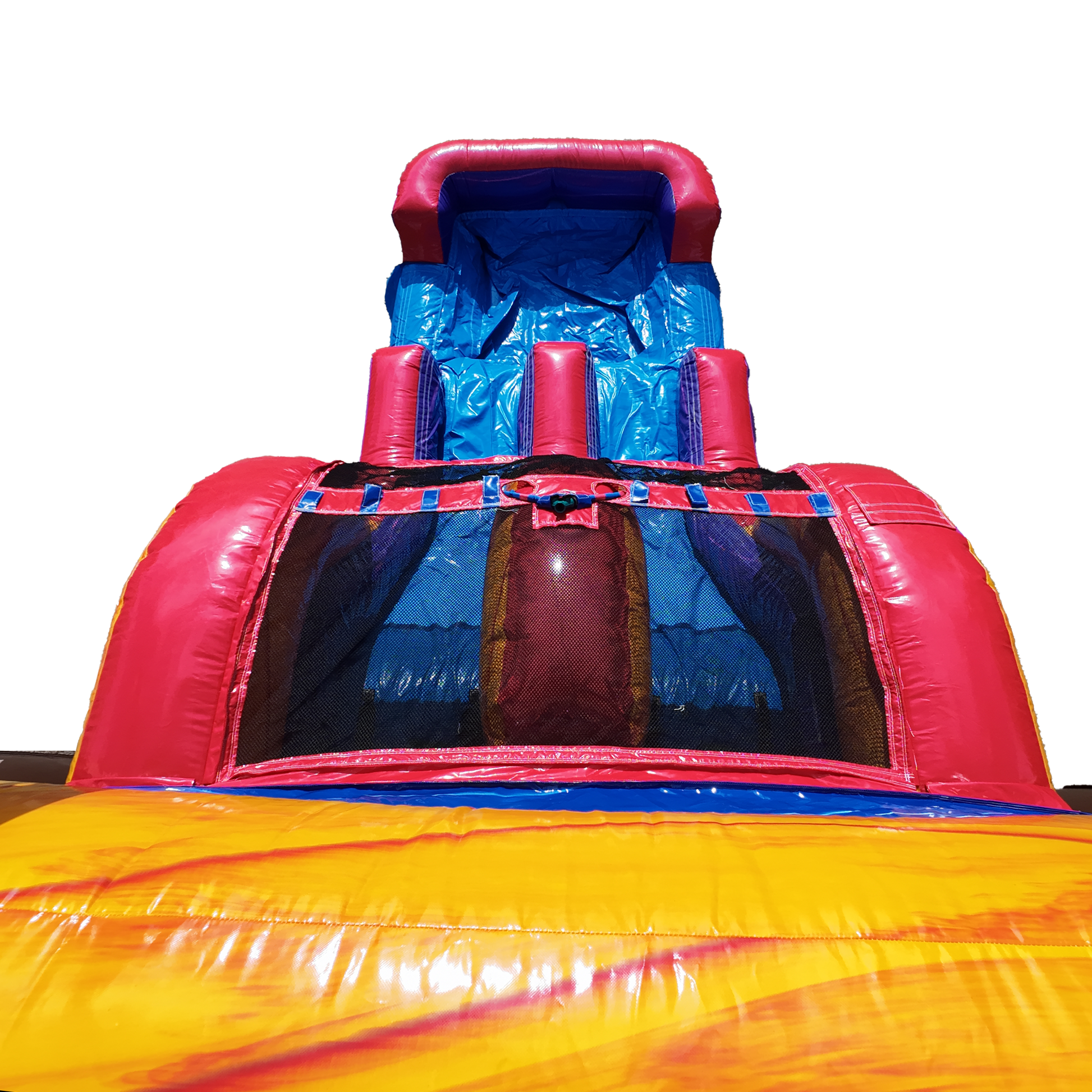 Turn up the intensity with the Lava Falls Combo—an inflatable bounce house and slide combo designed to bring the heat to any party or event. With its blazing red, orange, and black color scheme, this unit commands attention and keeps the energy high from the first jump to the final slide.