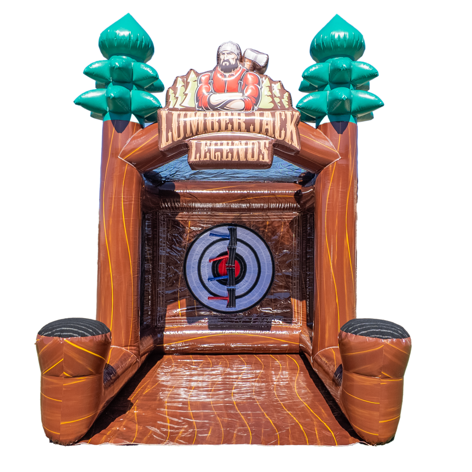 Built for reliability and designed for maximum visual impact, this compact axe game is easy to transport, quick to set up, and made from commercial-grade vinyl for long-lasting rentals. The velcro axes stick with satisfying accuracy, while the bold lumberjack graphics draw a crowd and keep players coming back for rematches.
