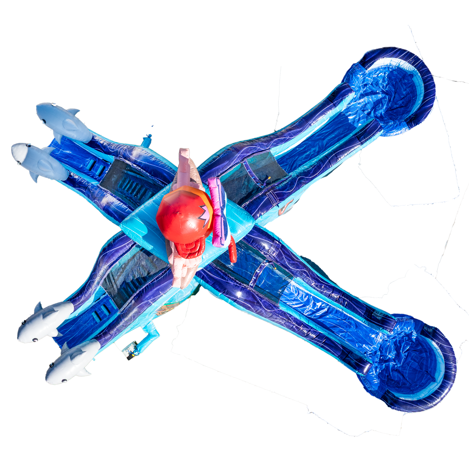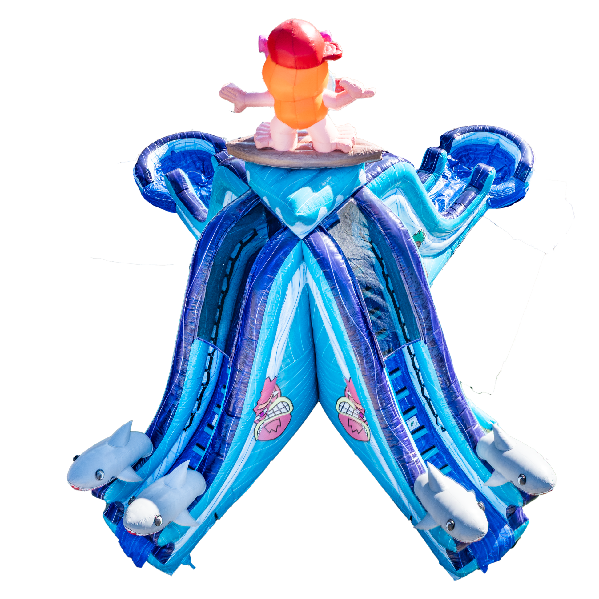 Towering Dual Lane Inflatable Water Slide with Island Style