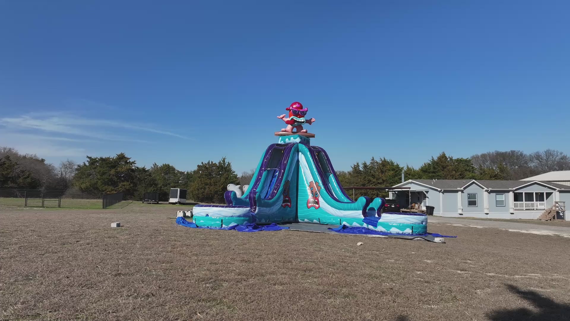 - Multi-use water slides featuring inflated pool bottoms, can be used wet or dry